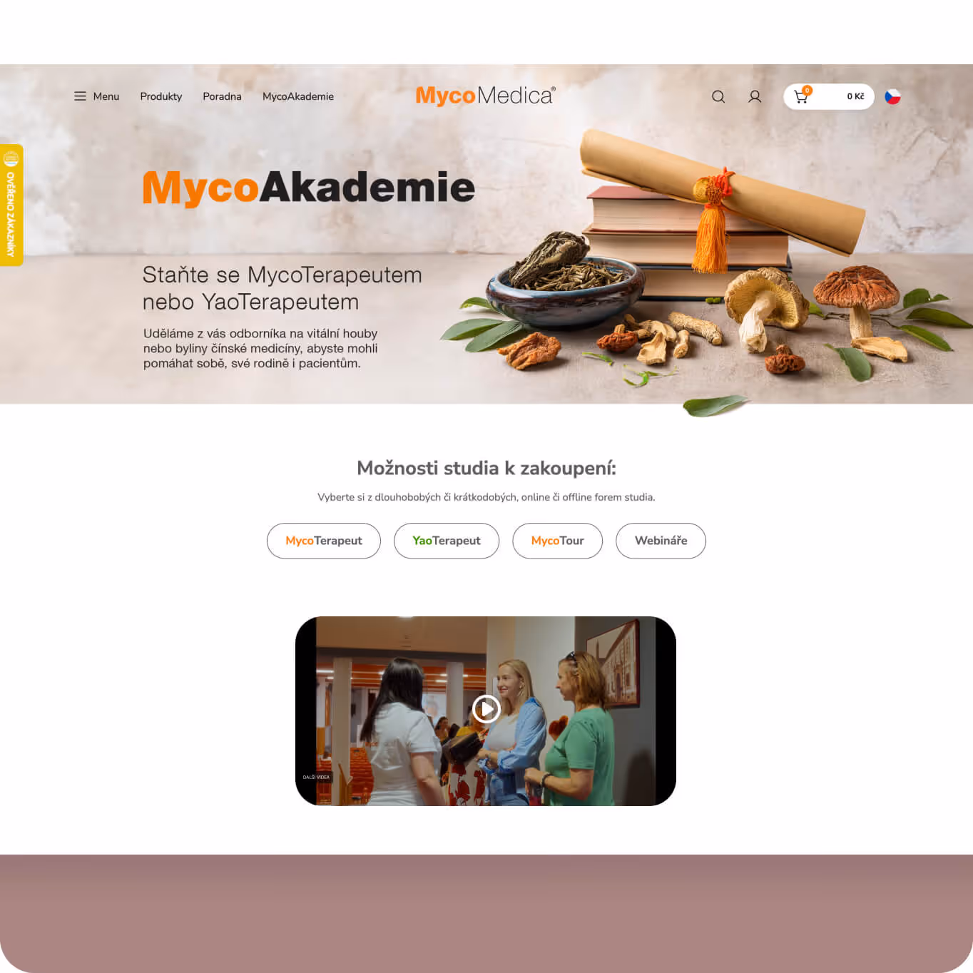Důležitou součástí řešení je strategické propojení s e-shopem MycoMedica, kde probíhá prodej kurzů, produktů a dalších výstupů. Platforma tak podporuje budování odborné autority značky a zároveň slouží jako dlouhodobý marketingový nástroj postavený na organické návštěvnosti a obsahu.