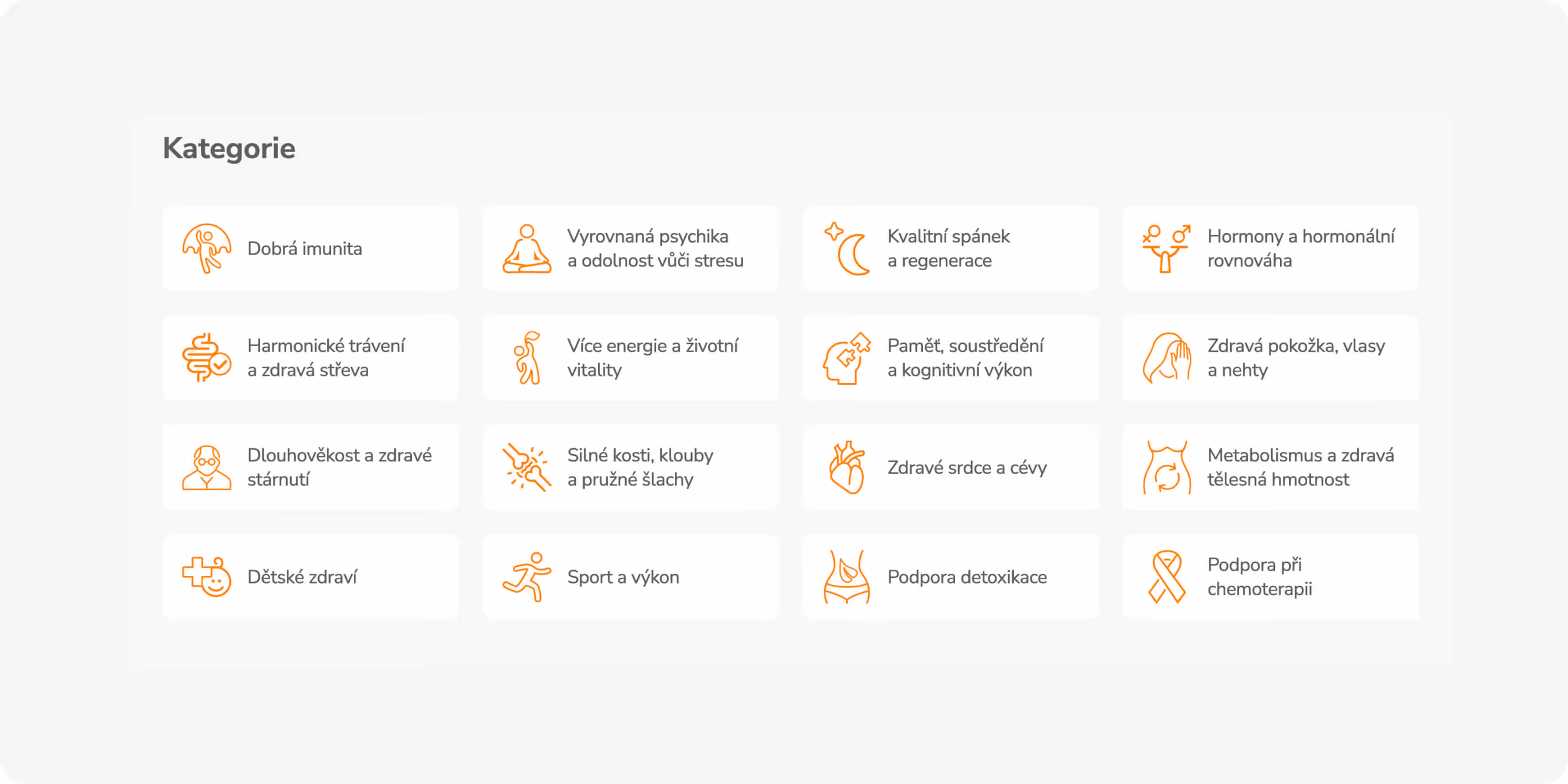 Pro katalog přes 150 produktů jsme implementovali vyhledávání s technologií ElasticSearch a chytrý systém filtrů. Zákazníci mohou hledat podle zdravotních kategorií (imunita, spánek, trávení...), typů produktů nebo konkrétních ingrediencí. Každý produkt může patřit do více kategorií najednou, což usnadňuje orientaci a zvyšuje šanci na nákup.