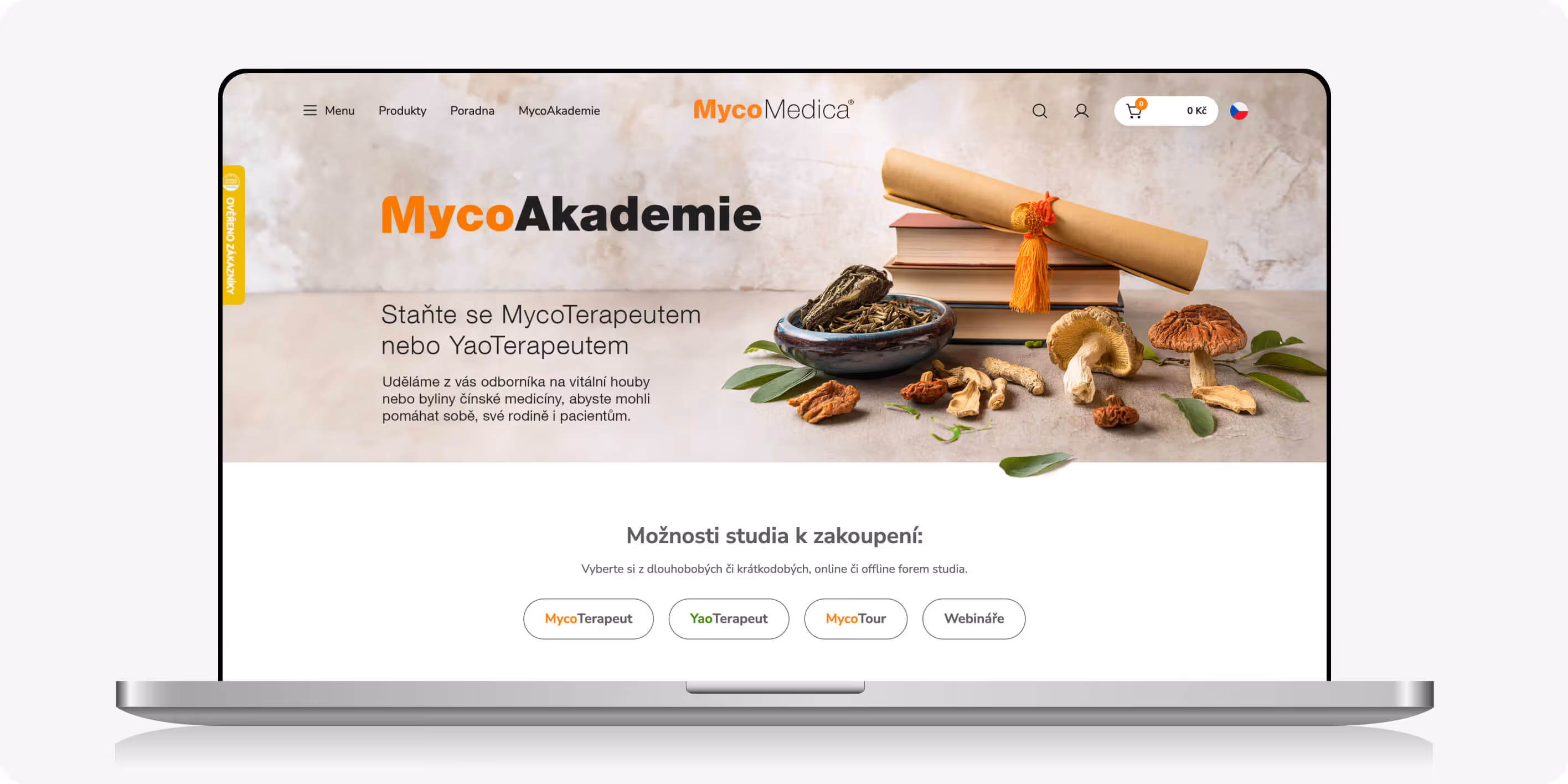 E-shop, který prodává i vzdělává. Součástí řešení je prodej a vysílání webinářů přímo na webu – bez externích platforem. Uživatel si produkt koupí, přihlásí se na vysílání a vše probíhá v jednom ekosystému značky. To dává Mycomedice plnou kontrolu nad obsahem, daty i uživatelským zážitkem.