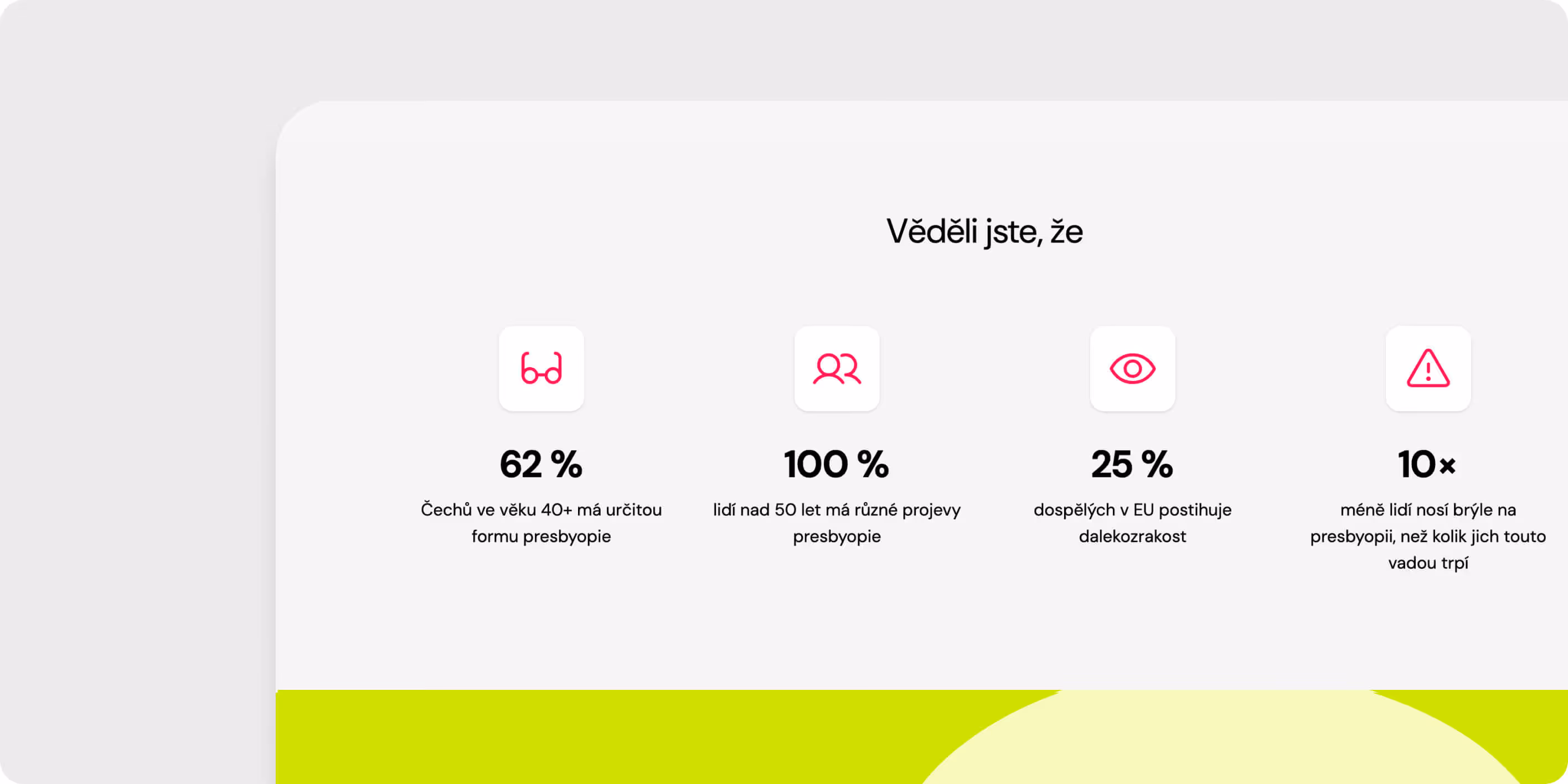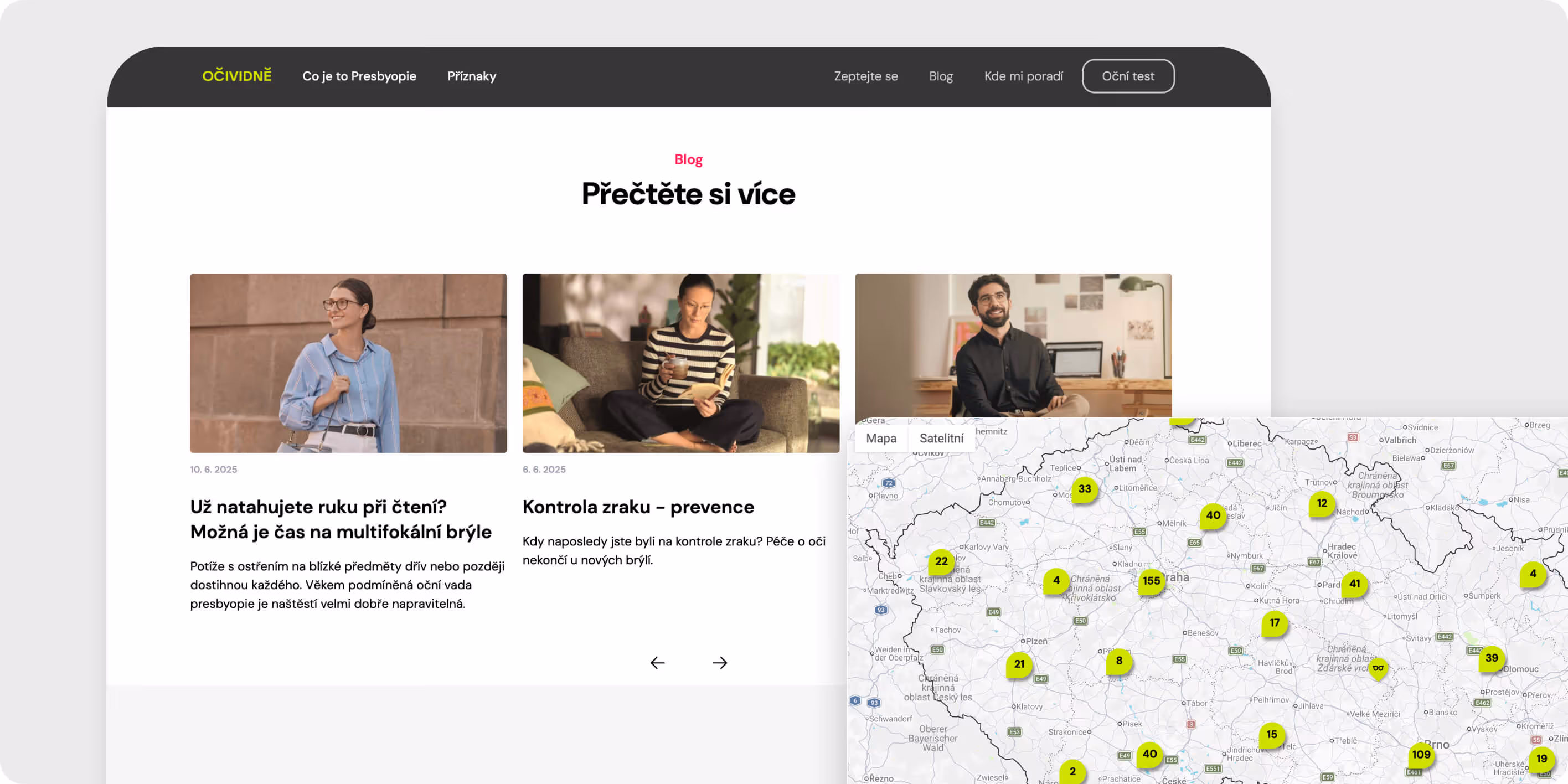 Místo, kde se zaujme i vysvětlí. Součástí kampaně byl kampaňový web, který fungoval jako centrální bod celé komunikace. Kombinovali jsme edukativní obsah, jasnou argumentaci a jednoduchý uživatelský flow, jehož součástí byla i online zkouška zraku.