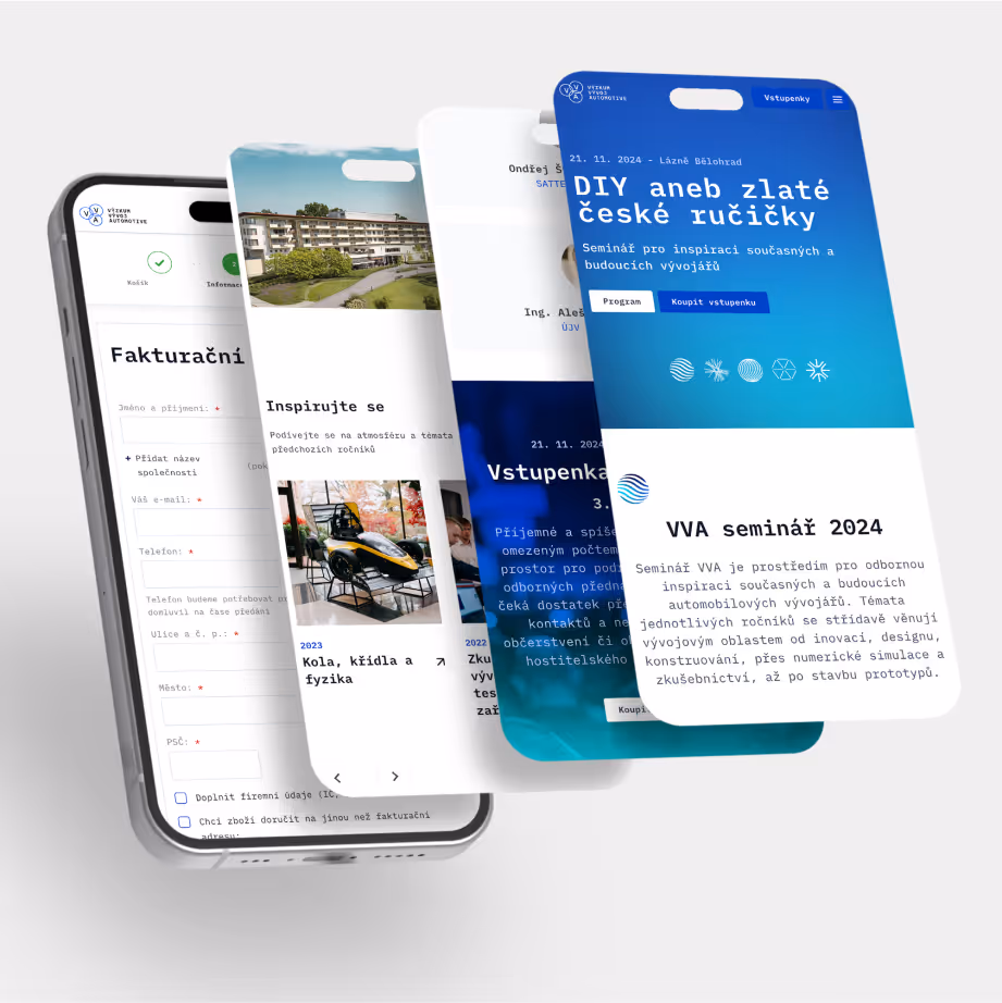 Původní web jsme proměnili v přehlednou jednostránkovou prezentaci. Program akce, registrace i galerie jsou teď dostupné na jeden scroll a přístup k informacím je otázkou několika kliknutí. Rychlým on-line nákupem vstupenek s košíkem jsme nahradili původní zdlouhavé vyplňování a správu formulářů. Ruku v ruce s webem jsme vytvořili novou vizuální identitu sázející na kombinaci bílé a modré nebo jasně odlišující grafiku.